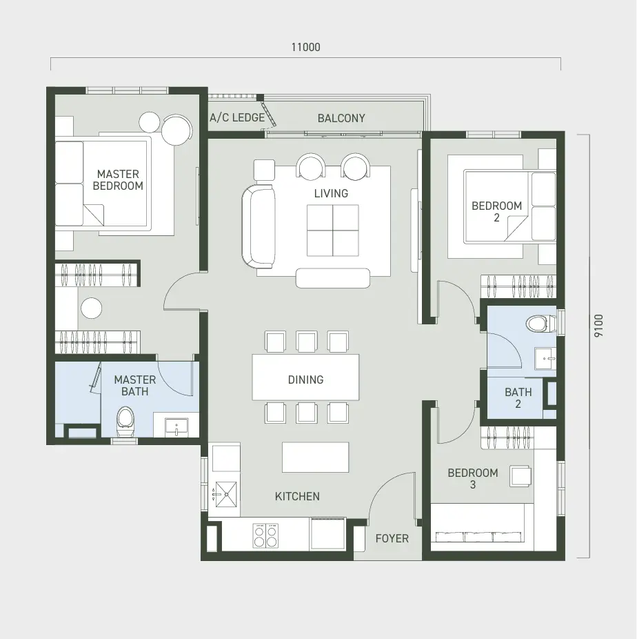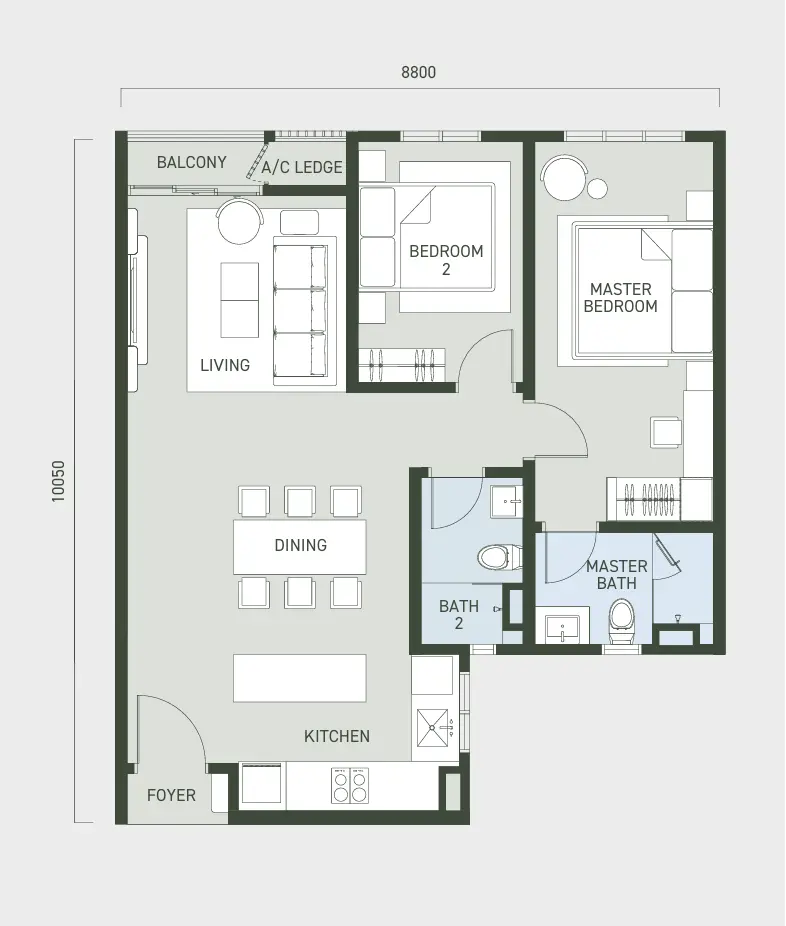 Aras Residences offers thoughtfully designed homes to suit different lifestyles. Choose between Type A, an efficient 850 sq ft unit with 2 bedrooms and 2 bathrooms — perfect for singles or couples seeking a cosy, easy-to-manage home — or Type B, a more spacious 1,062 sq ft unit with 3 bedrooms and 2 bathrooms, ideal for small families or anyone wanting a bit more room to grow.